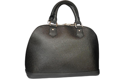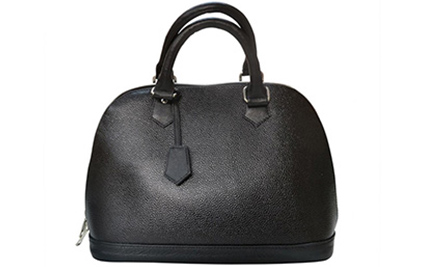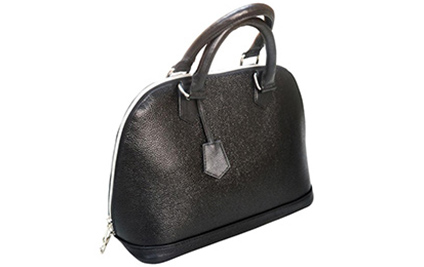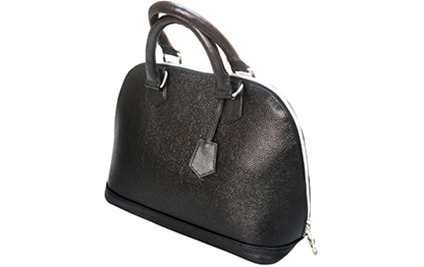 Black leather tote with black polyester fabric interior. The bag is accentuated with a black leather handle is perfect as companion during travel. Multiple interior pocket and nickel feet.
