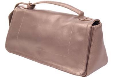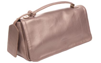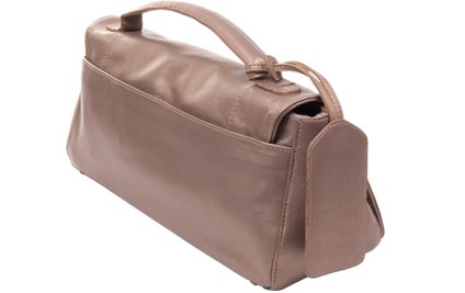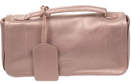 Titon leather finish with purple inner lining. Bag mouth styled with a beautiful flap that snaps. Multiple inside pockets. Includes a tag to personalize your pal.