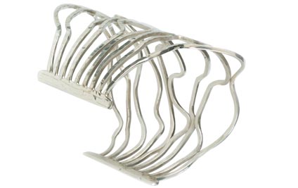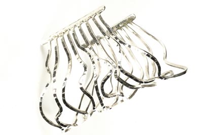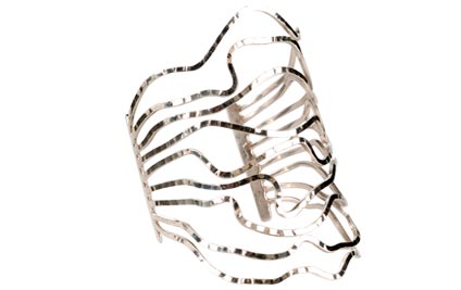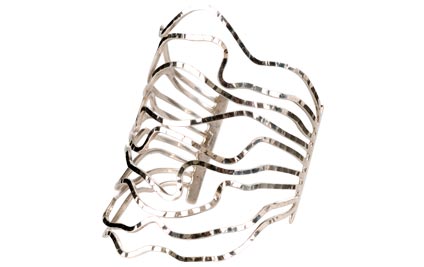 Measurements: Wrap around length 6.25"; top length 4", bottom length 1.75"; thickness 20 gauge; 92.5 Sterling Silver.