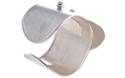 Buckle-style cuff delivers an uncompromising dramatic presence. Flexible to allow for size adjustment.