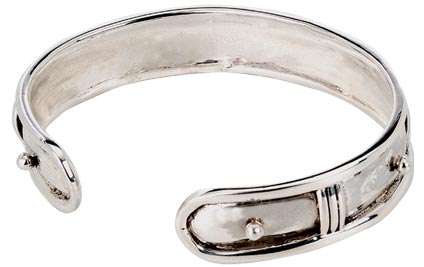 Measurements: Width 0.5"; thickness 1/16"; end-to-end length 7"; Sterling silver.