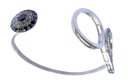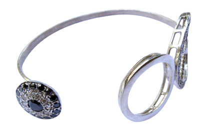 Three circles connected with each other that gives the bracelet a modern look. Zirconia and Black Onyx stones used.