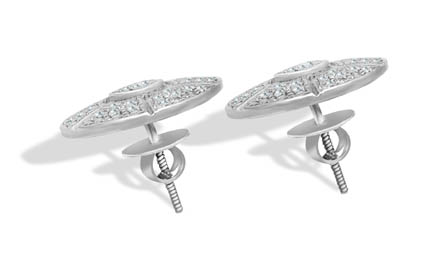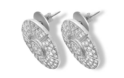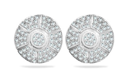 Button style German Silver earring with Zirconia stone set by hand individually. Straight screw closure.