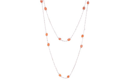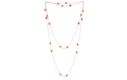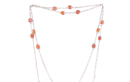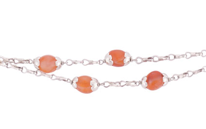 German Silver chain necklace with polished 20 carnelians (20 carat each) set in motif design. Can be doubled.