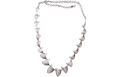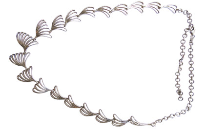 Modern design in the shape of a 19pcs of butterfly wing made from silver wires. Crab closure.