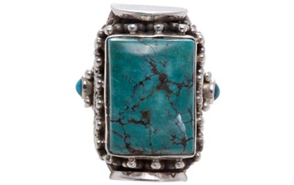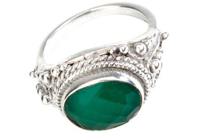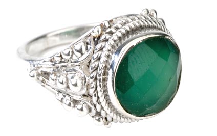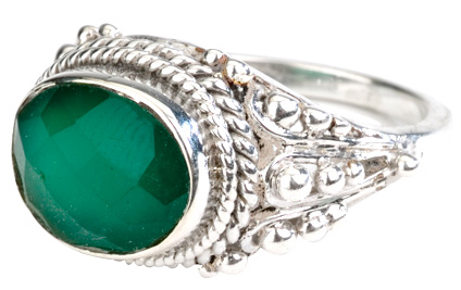Sterling silver with Italian column motif and faceted green onyx. Available in size 6, 7 and 8.
