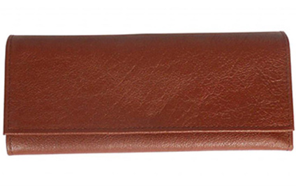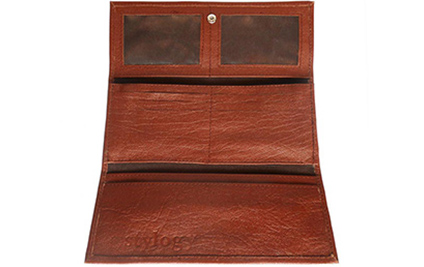 A great companion wallet crafted from Brown leather with black polyester inner lining. Design includes multiple slots to carry everyday essentials. Three folds button closure.