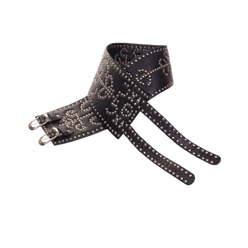 Gaelic, Black Leather Belt w/ Nickel Rivets